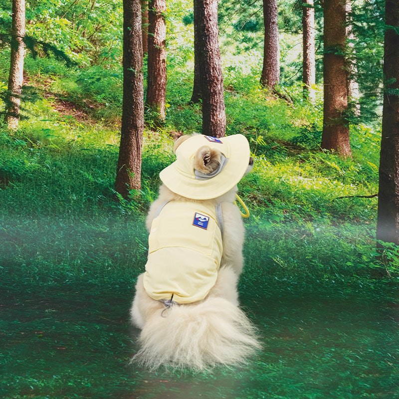 使い方は簡単。冷水で濡らし、軽く絞って水気を切り、振ってから着用するだけ。同シリーズのハットと組み合わせれば、真夏のお散歩も安心して楽しめます。