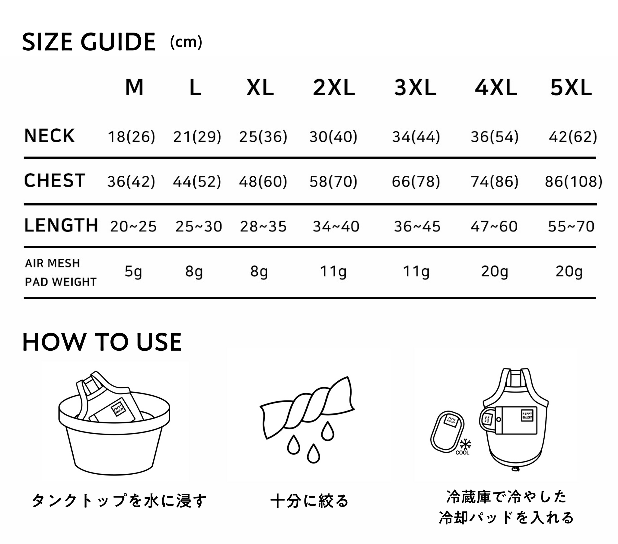 特殊な接触冷感素材を使用しており、着用するだけでひんやりとした心地よさを実感できます。さらに、水に濡らして使用することで、素材の優れた吸水性と速乾性により、効果的な気化熱冷却を実現。約20〜40分間、持続的な涼しさを提供します。