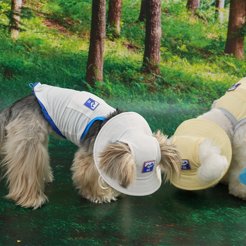 使い方は簡単。冷水で濡らし、軽く絞って水気を切り、振ってから着用するだけ。同シリーズのハットと組み合わせれば、真夏のお散歩も安心して楽しめます。