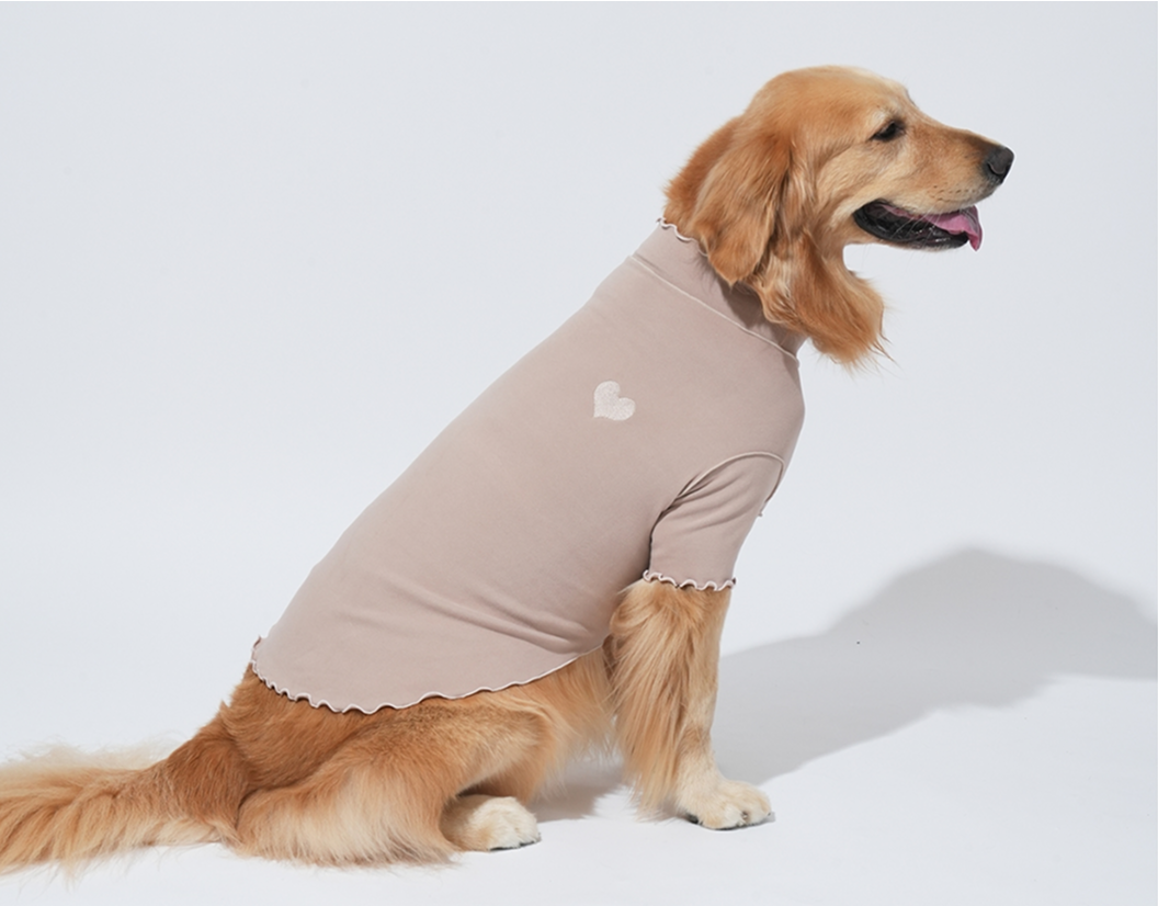 適度な袖丈で、ハーフタートルネックデザインにより、様々な犬種が快適に着用できます。